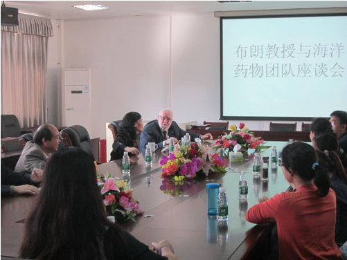 11月18日在william威廉中文官网会议室, Brown教授与海洋药物团队成员进行了座谈。牵头人宋采教授,吉宏武经理、李雁群教授及其他教师和实验系列教师等12人参加了座谈会。吉经理希望我们从Brown教授的精彩报告中学习到严谨的科研思维方法和有用的科学研究手段。宋采教授就目前海洋药物研究室的现状向Brown教授作了简单介绍,表示希望Brown教授能够就这个情况向我们提供一些建议,如何利用目前的资源和人员尽快地开展海洋药物研究。Brown教授认为目前海洋药物团队成员的知识背景和研究方向差别较大,比较好的办法是大家进行基础理论的学习,从共同的基础理论延伸到各个方向领域,这样既能保证研究的整体性,又能保持每个人独特的研究方向和特点。
