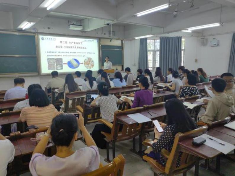 2025年4月22日,WilliamHill中文官方网站william威廉中文官网在湖光校区广学楼219教室成功举办了2025年度第一场教学公开课观摩活动。本次活动以周春霞教授主讲的《水产食品加工学》课程为示范,主题为“冷冻鱼糜及鱼糜制品加工”,吸引了学院40余位教师及食安卓越1221班全体员工参与,展现了学院在师德师风建设和教师教学能力培养方面的积极探索。