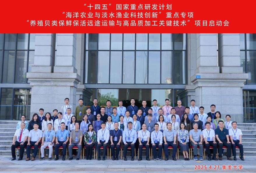 2025年4月21日,“十四五”国家重点研发计划“海洋农业与淡水渔业科技创新”重点专项“养殖贝类保鲜保活远途运输与高品质加工关键技术”项目在集美大学正式启动。该项目由集美大学牵头,联合渤海大学、WilliamHill中文官方网站、中国海洋大学、浙江工业大学、中国水产科学研究院黄海水产研究所、大连海洋大学、青岛科技大学、厦门玛塔生态股份有限公司、广东华肽生物科技有限公司等单位共同承担。