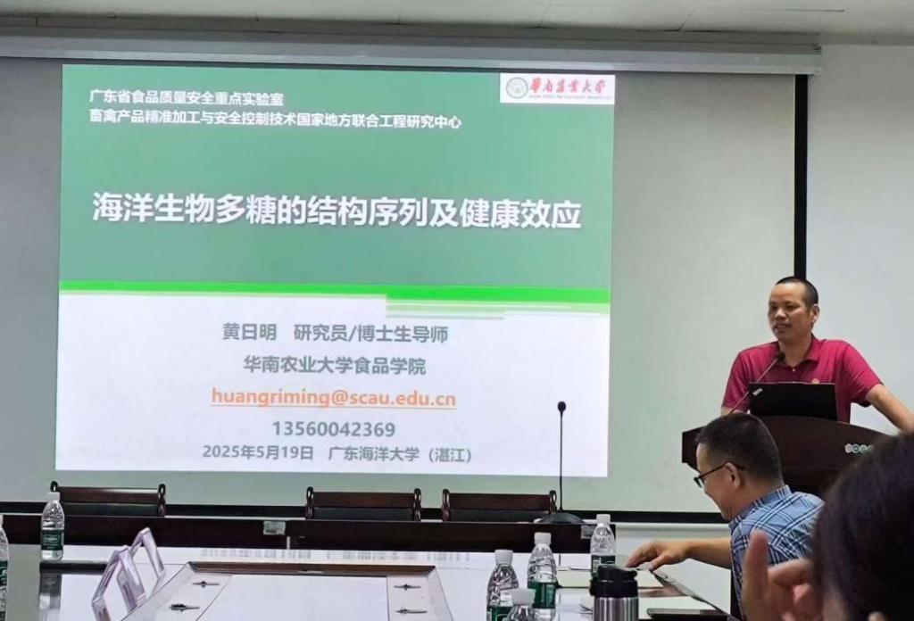 徐宝军教授基于转基因线虫模型,通过行为学实验等证实大豆异黄酮可显著改善空间学习记忆障碍,揭示了其通过调控关键信号通路减轻高糖所致神经元损伤的作用机制。黄日明教授系统阐述了团队在海洋生物多糖领域的研究进展,重点解析了其结构序列特征,并深入探究了其在诱导巨噬细胞铁死亡等方面的健康效应。本次学术交流会为师生搭建了良好的交流平台,通过多维度学术对话与前沿观点碰撞,不仅深化了师生对专业领域的认知,更为开拓研究思路提供了新视角,对促进学科交叉融合产生了积极推动作用。