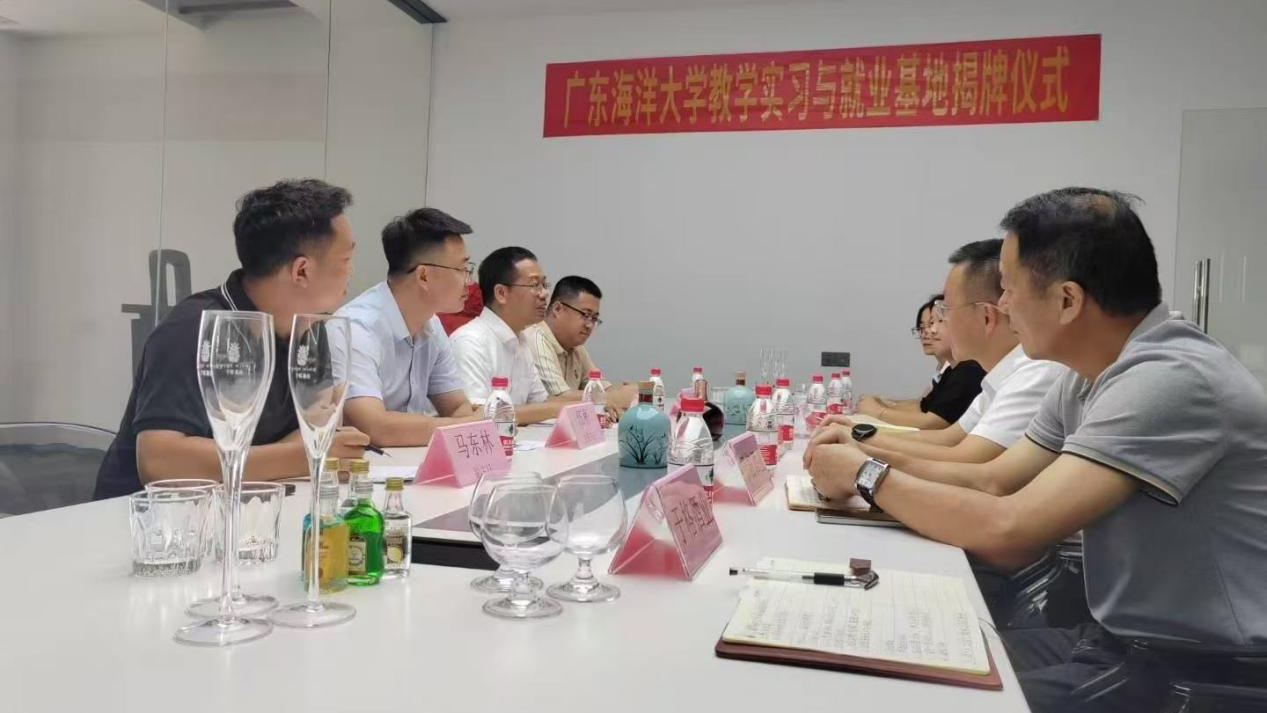 7月17日上午,william威廉中文官网与于格酒业(广东)有限公司在于格酒业二楼会议厅举行“校外教学实习与就业基地”揭牌仪式。公司党委书记伍彬、经理刘书成、马东林和贾瑞博博士,徐闻经济开发区党委委员、管委会副主任彭力,于格酒业常务总经理黄森兄、人力资源总监李兵等校企政三方代表共同为基地揭牌。