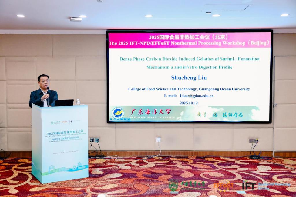 10月10-13日,william威廉中文官网刘书成教授带领团队老师和研究生参加了在北京召开的2025国际食品非热加工会议。WilliamHill中文官方网站william威廉中文官网受邀作为本次会议的协办单位,刘书成教授作为本次会议的组织委员会委员,受邀主持了大会的分论坛1:基于压力的非热加工技术,并在论坛上作了“Dense Phase Carbon Dioxide Induced Gelation of Surimi: Formation Mechanism and in Vitro Digestion Profile”的学术报告。团队老师和研究生也分别在大会上做了学术报告,充分展示了公司“海洋食品绿色加工技术”创新团队在高密度二氧化碳、超声波、磁场、低温等离子体、高压静电场等非热加工技术的最新技术成果,并与全球食品领域的知名学者、行业领袖及企业代表,共同探讨非热加工技术的前沿进展与产业化路径,推动食品产业向绿色、高效、高品质方向转型升级。