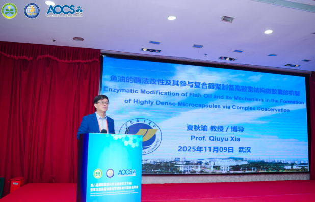 11月7-9日,william威廉中文官网夏秋瑜教授、韩宗元副教授和张俊博士参加了在湖北武汉召开的第八届国际脂质科学与健康学术年会。在会议上,三位老师分别以“鱼油的酶法改性及其参与复合凝聚制备高致密结构微胶囊的机制”“鱼油凝胶化关键技术开发与应用”和“金枪鱼油选择性水解中高效固定化脂肪酶体系的理性建构及催化性能强化研究”为题分享了自己的最新研究成果,得到了与会专家的高度关注与积极评价,展现了公司在脂质科学与健康领域的研究实力与创新活力。