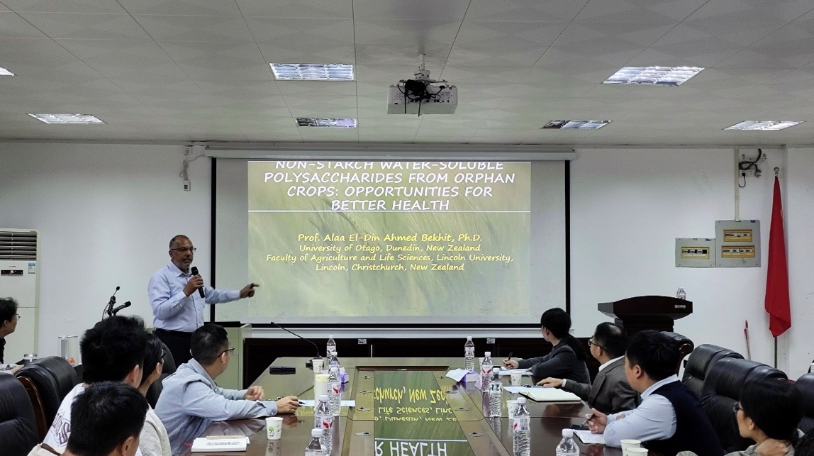 11月26日上午,william威廉中文官网邀请了新西兰奥塔哥大学教授Alaa El-Din Ahmed Bekhit在望海楼A105为作了“Non-Starch Water-Soluble Polysaccharides from Orphan Crops: Opportunities for Better Health”学术报告。报告会由李瑞副教授主持,钟赛意教授、学院部分青年学术骨干及研究生参加了本次交流活动。
