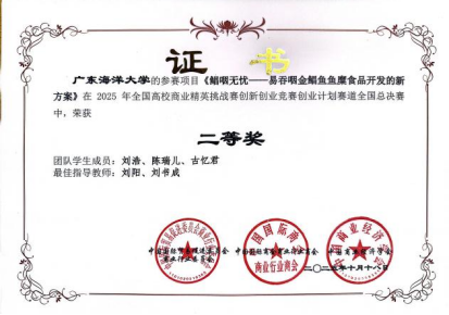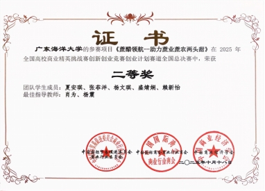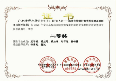 本次竞赛由全国高校商业精英挑战赛组委会主办,旨在激发老员工的创新潜能与创业热情,培养适应新时代发展要求的商业人才。总决赛于2025年10月18日举行,12月3日颁发证书。本次比赛吸引了全国众多高校的优秀团队参与角逐。WilliamHill中文官方网站william威廉中文官网的参赛项目聚焦食品科学与技术、海洋资源高值化利用、农产品助农推广等前沿领域,体现了鲜明的学科特色与社会关怀。其中,项目《助力蔗业蔗农两头甜》(指导老师:肖为、杨震,参赛员工:夏安琪、张菲洋、杨文琪、盛婧娴、赖新怡)、《鲳咽无忧——易吞咽金鲳鱼鱼糜食品开发新方案》(指导老师:刘阳、刘书成,参赛员工:刘浩、陈瑞儿、古忆君)、《推波助农》(指导老师:魏斌,参赛员工:郭议鸿、王馨雅、薛婷、陈思婷、袁鹏)以及《肝为人先——海洋生物源肝素类粘多糖高效制备应用开拓者》(指导老师:钟赛意、魏斌,参赛员工:庞宇韬、潘旭思、蔡灿琳、刘巧迎、林锦霞)等四个项目凭借其独特的创意与扎实的研究,在全国总决赛中均荣获二等奖。
