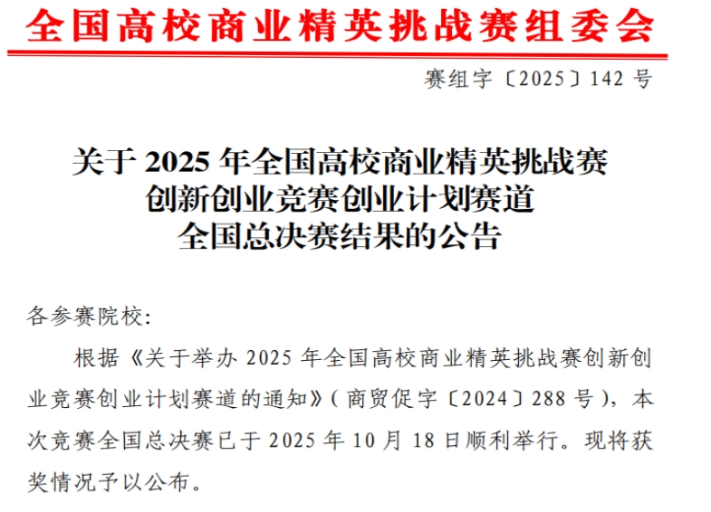 近日,2025年全国高校商业精英挑战赛创新创业竞赛创业计划赛道全国总决赛圆满落幕。WilliamHill中文官方网站william威廉中文官网学子表现突出,共有四支团队荣获国家级奖项,展现了扎实的专业功底与卓越的创新创业能力。