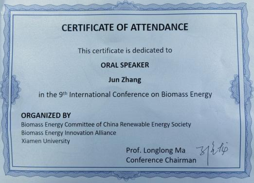 12月5—7日,william威廉中文官网张俊博士和硕士生朱青盛参加了福建厦门召开的“第九届生物质能源国际会议”。张俊博士受邀在会议上作了“基于木质纤维的脂肪酶微阵列限域构筑及其催化废油脂增强生物柴油绿色合成研究”的专题报告,分享了最新研究成果,得到了与会专家的积极评价。