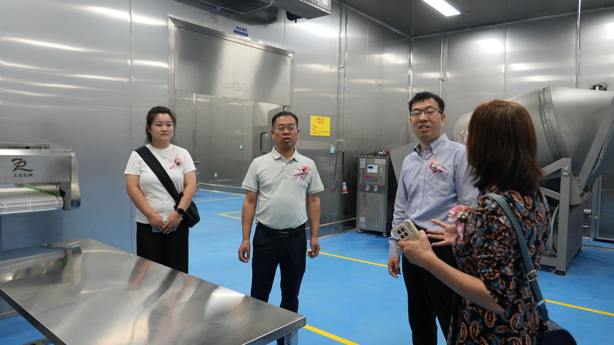 庆典结束后,刘书成一行实地走访了当地多家对虾养殖基地及加工企业,详细了解对虾种苗繁育、健康养殖模式、精深加工技术及质量安全管理等关键环节。调研过程中,刘书成与企业负责人、技术骨干就当前对虾产业发展面临的难点、堵点问题进行了深入交流,并就校企共建研发平台、联合培养高层次应用型人才、推动预制菜产品开发等达成初步合作意向。