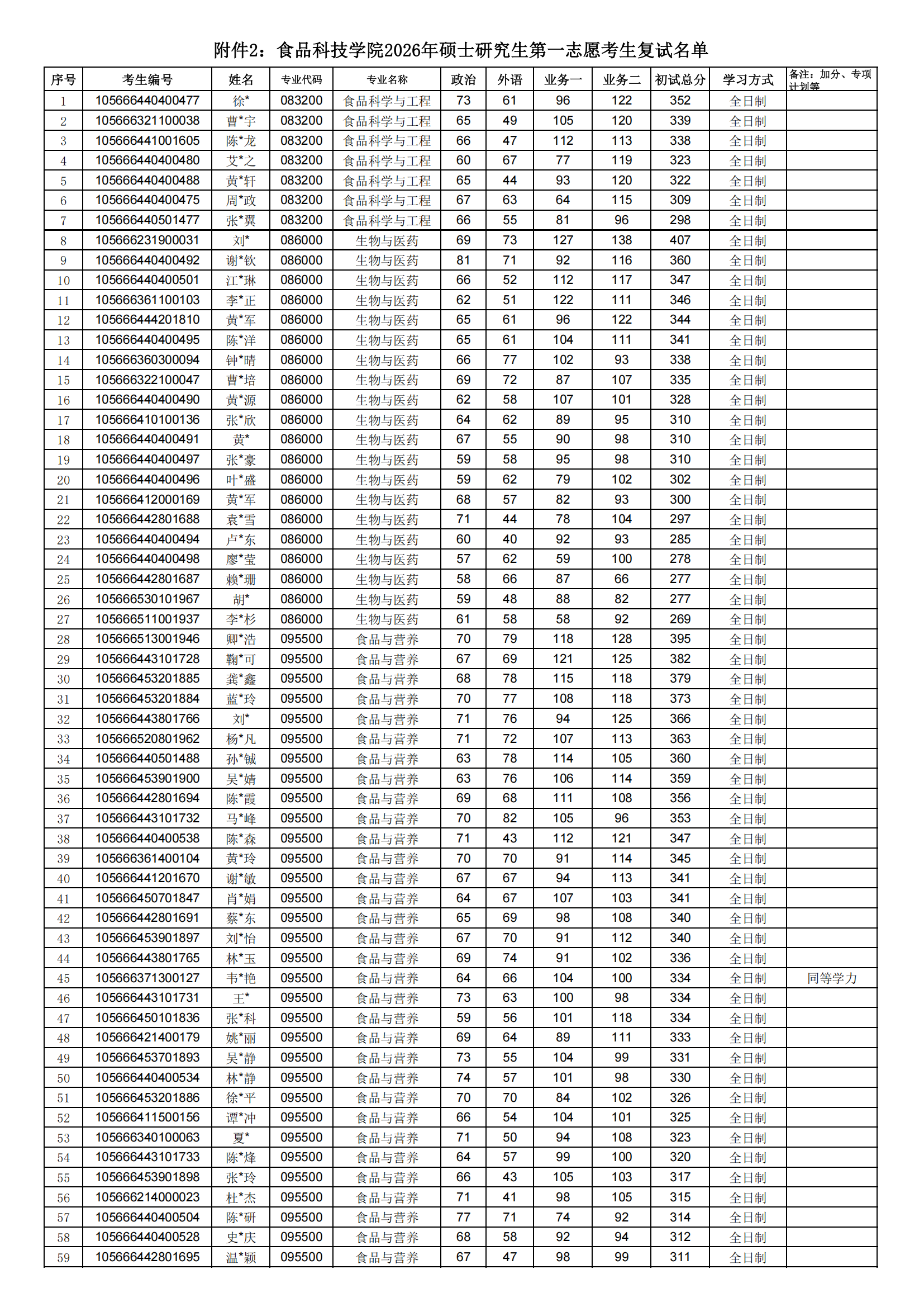 根据学习方式(全日制、非全日制)、招生类别、学位点按拟录取总分数从高分到低分确定拟录取名单。按第一志愿和调剂复试考生分别排序。拟录取总分=初试加权分数+复试加权分数,复试成绩和录取成绩均保留两位小数,复试权重统一设定为40%。