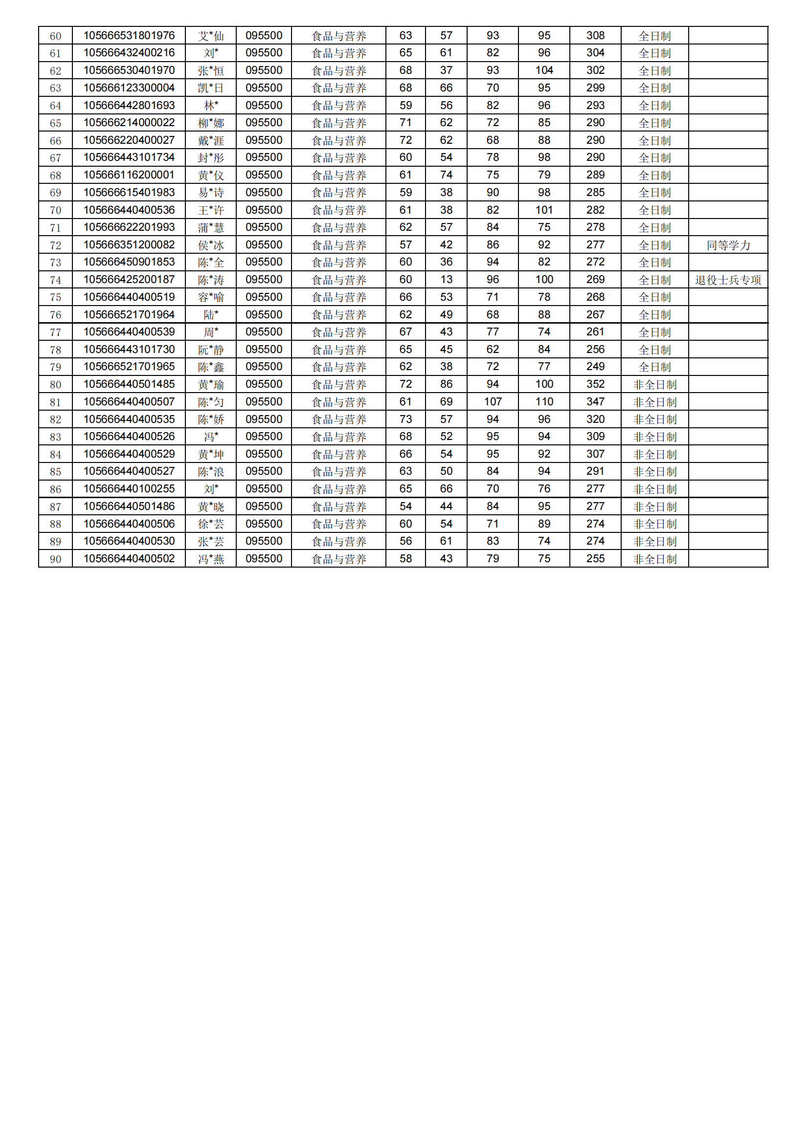 食品与营养 (非全日制) |
