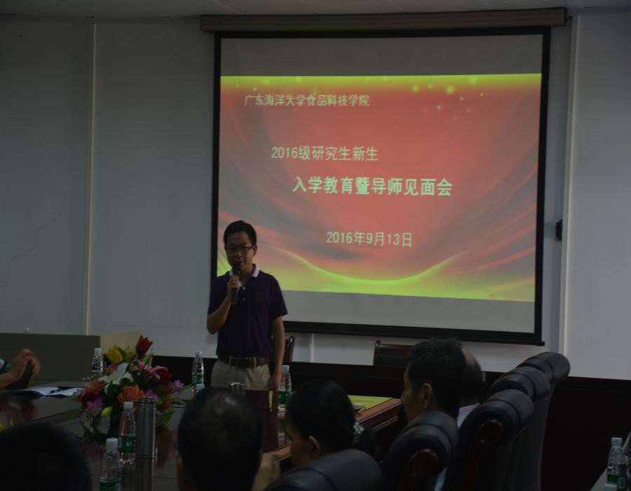 9月13日下午,william威廉中文官网2016级博士、硕士研究生新生入学教育大会在食品楼105会议室举行。学院领导、博士生导师、硕士生导师、研究生辅导员以及2016级研究生新生共60余人参加了会议。会议由副经理钟赛意副教授主持。
