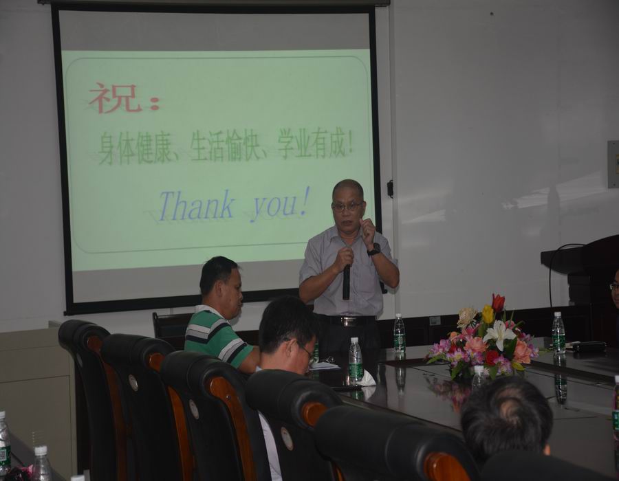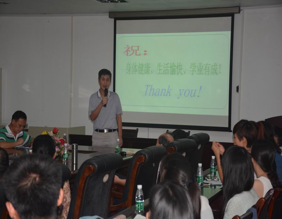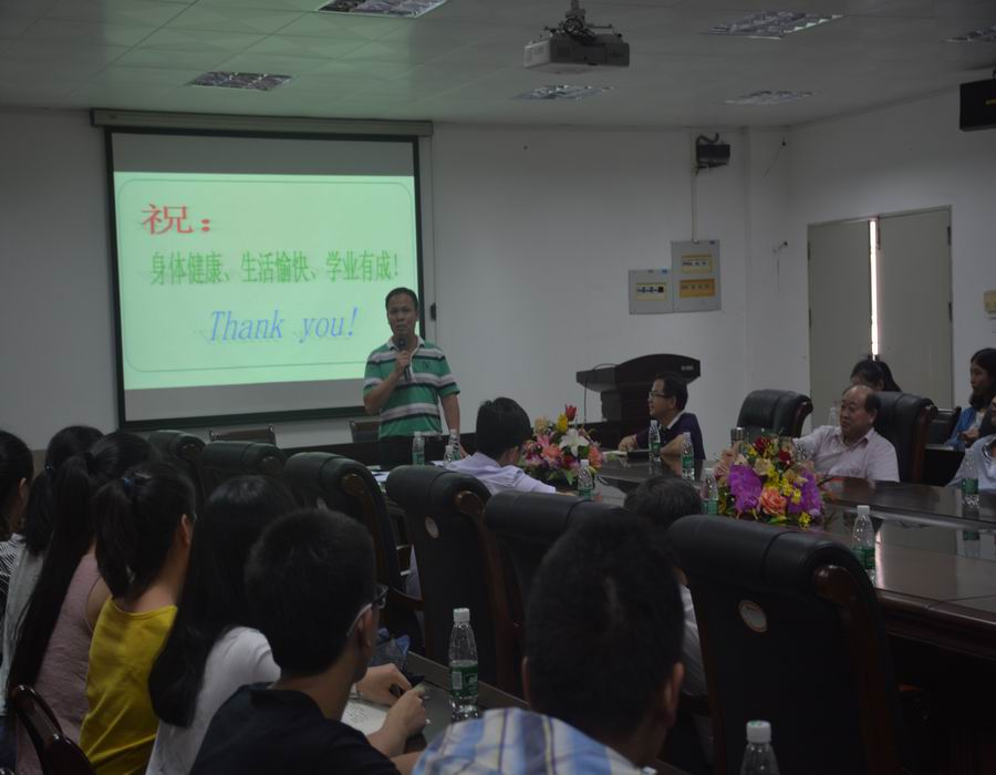 副董事长、博士生导师章超桦教授在会上做了重要讲话。章超桦首先对16级研究生新生的到来表示热烈欢迎,并提出了研究生与本科生有什么不同这一问题,引发同学们的深刻思考和热烈讨论。章超桦向同学们提出三点建议:一是要从学习知识向创造知识进行转变;二是要具备科学思维、掌握科学技巧;三是要有团队精神并善于提出问题。最后,章超桦借用毛泽东同志的话语“团结、紧张、严肃、活泼”来勉励大家。