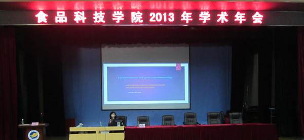 下午,宋采教授、千忠吉博士、李承勇博士分别作题为“精神神经免疫学介绍以及在新药研发中的应用”、“利用菌膜假丝酵母发酵巴夫藻所得肽,诱导肌成纤维细胞分化”、“阵列纳米通道中物质传输特性研究”的学术报告。