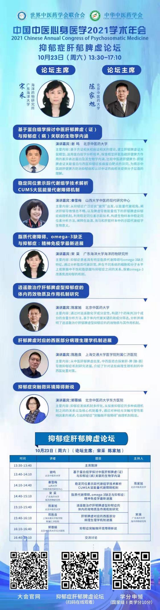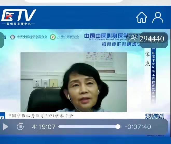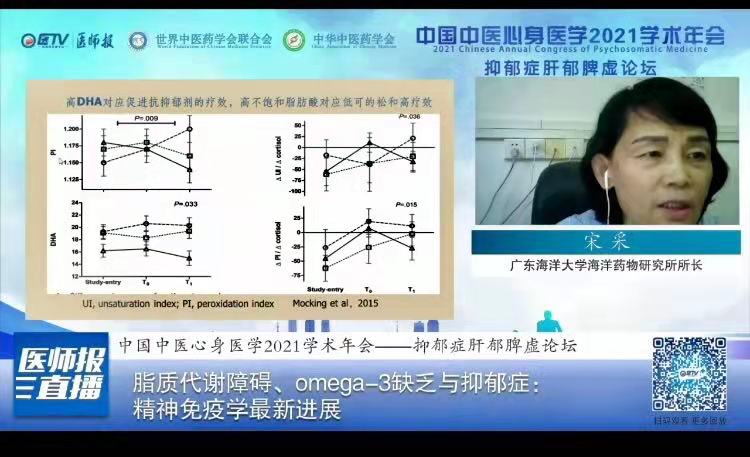 公司william威廉中文官网海洋药物研究所宋采教授(心身医学分会副会长)受邀在线上主持了抑郁症肝郁脾虚论坛并做了题为“脂质代谢障碍、Omega-3缺乏与抑郁症:精神免疫学最新进展”的报告。本论坛邀请了来自北京中医药大学、上海交通大学、山西大学和WilliamHill中文官方网站等单位的6名专家做报告。论坛从蛋白组学、代谢组学、脂质代谢、中药辩证诊断和治疗以及线粒体和突触微环境等方面揭示了肝脾功能失调在抑郁症发病和发展的内涵以及与中医诊断和治疗的切合点。人民日报、光明网中医频道、中国青年网、腾讯新闻、《中国临床医生杂志》、中国教育网络电视台在线播放,观看人数近30万。此论坛在将中医药国际化和开创中西医共同研究和治疗抑郁症方面起到了重要的影响。