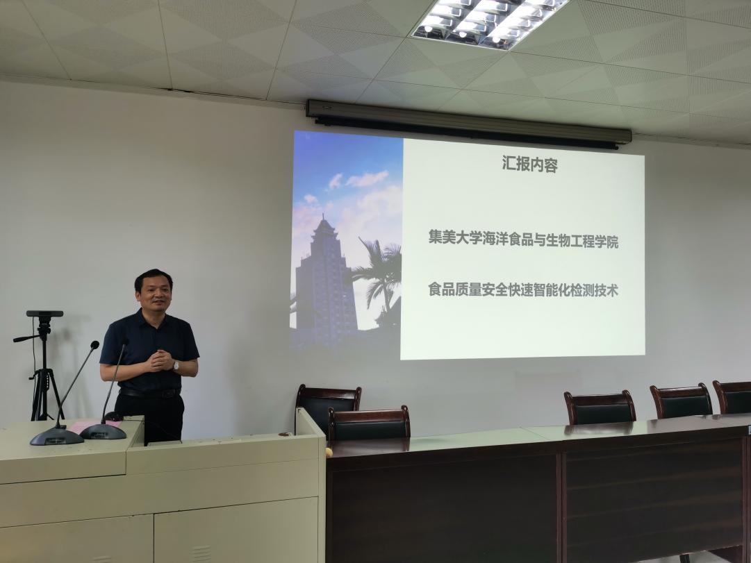 2023年5月22日下午,william威廉中文官网邀请了集美大学海洋食品与生物工程学院经理陈全胜教授在望海楼A105会议室为师生作了题为《食品质量安全快速无损检测技术创新与应用》的学术报告。报告会由刘书成经理主持,学院副经理钟赛意教授、水产食品质量与安全方向负责人孙力军教授和部分教师及研究生参加了报告会。