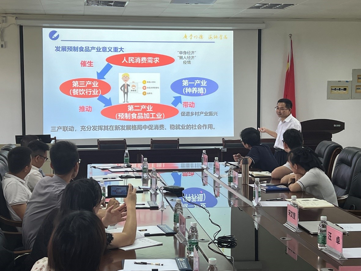 6月27日下午,广西防城港市委党校中青班学员、防城港港口区乡村振兴局局长肖超一行六人来公司william威廉中文官网就水产品预制菜产业的相关问题进行调研,william威廉中文官网副经理钟赛意及五位青年博士参加了座谈。