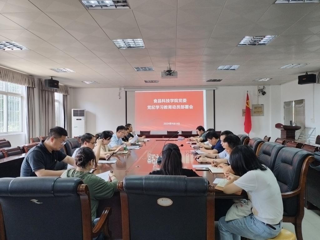 会议传达学习了习近平总书记关于党纪学习教育的重要讲话和重要指示精神、中央党的建设工作领导小组会议精神和中共中央办公厅《关于在全党开展党纪学习教育的通知》。副经理钟赛意领学了《中国共产党纪律处分条例》,并结合学院工作实际谈了自己的学习体会。