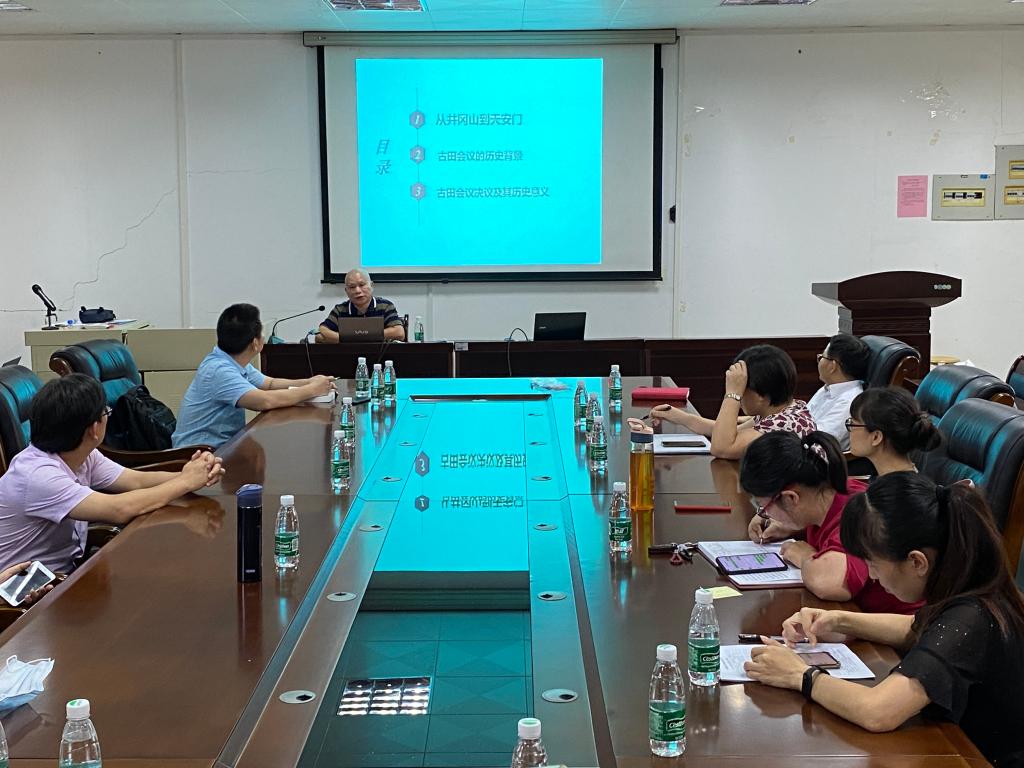 章超桦教授从“井冈山到天安门”、古田会议的历史背景、古田会议决议及其历史意义等方面,阐述古田会议前后我党革命战争历程和会议在我党我军建设史上的历史地位,最后提出新时期要弘扬古田会议精神、坚定理想信念、不断提高党员的思想政治水平,永葆青春活力。