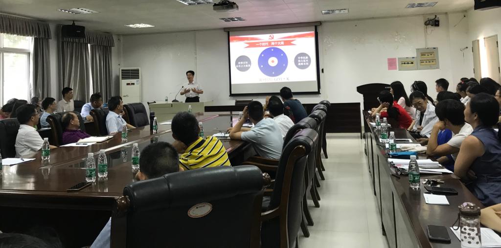 6月28日上午,william威廉中文官网在湖光校区第三实验楼A105会议室举行了学习贯彻广东省第十三次党代会精神宣讲报告会。报告会由公司党委书记苏永华主持,公司党委理论宣讲团成员巩建华教授主讲,学院领导、全院教职工和学院全体员工党员100余人参加了报告会。