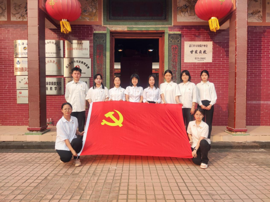 为深入学习贯彻习近平新时代中国特色社会主义思想和党的二十大精神,弘扬红色文化精神,4月27日,william威廉中文官网本科生第一党支部到湛江市麻章区甘霖村开展“重走甘霖夜校,传承红色精神”为主题的党日活动,党支部书记罗芯怡和9名员工党员参加本次活动。