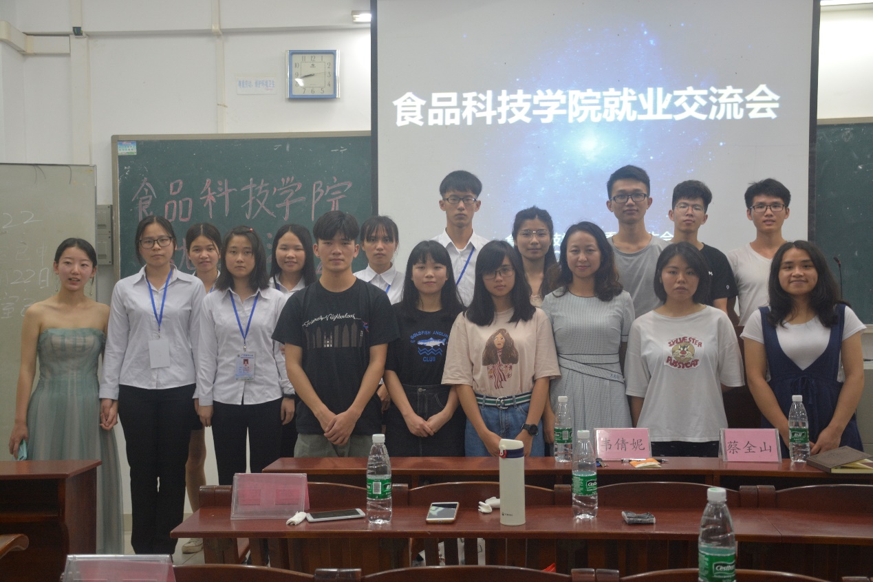 2018年5月30日晚william威廉中文官网就业交流会在钟海楼04039正式召开。出席本次会议的嘉宾有william威廉中文官网团委书记韦倩妮、员工会副主席蔡全山以及公司14级食品企业就业和跨专业就业情况良好的员工林红燕、徐国梁、肖莺、邹智龙、赖助娟、钱思旦。