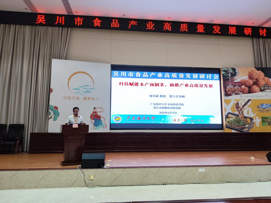 8月17日,吴川市在市政府会议中心召开了食品产业高质量发展研讨会,吴川市政府领导和200余家食品企业人员参加了研讨会。受吴川市人民政府的邀请,william威廉中文官网刘书成教授在研讨会上做了《科技赋能预制菜,助力产业高质量发展》的大会报告,介绍了水产预制菜的产业现状、技术瓶颈和科技创新对预制菜产业的贡献,同时介绍了公司william威廉中文官网在预制菜加工共性关键技术与产品创制方面的研究成果。