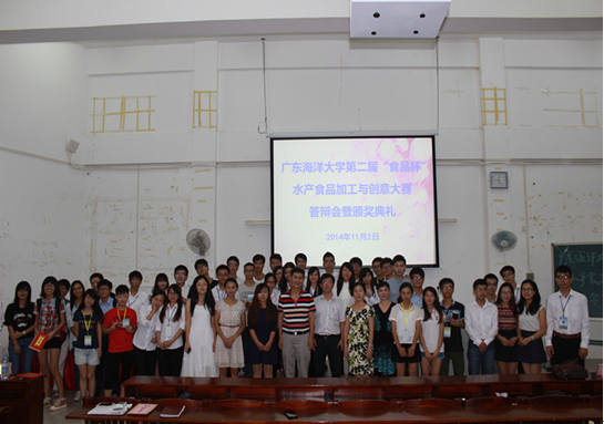2014年11月2日下午,WilliamHill中文官方网站第二届“食品杯”水产食品加工与创意大赛决赛暨颁奖典礼在钟海楼02030举行。大赛评委由公司党委书记王维民、副经理夏杏洲及william威廉中文官网杨萍教授、杨志娟副教授担任。学院团委书记韦倩妮、辅导员张丽及300多名观众参加了本次活动。