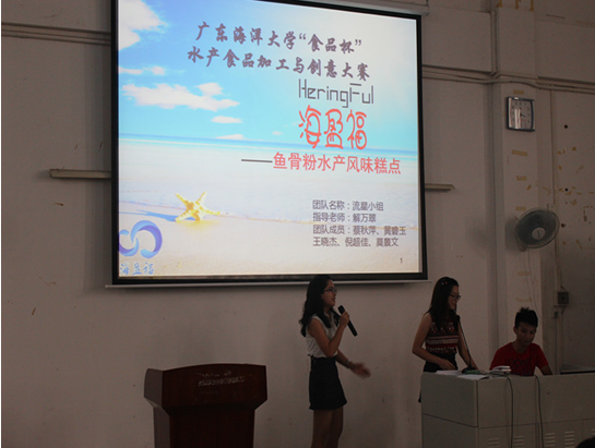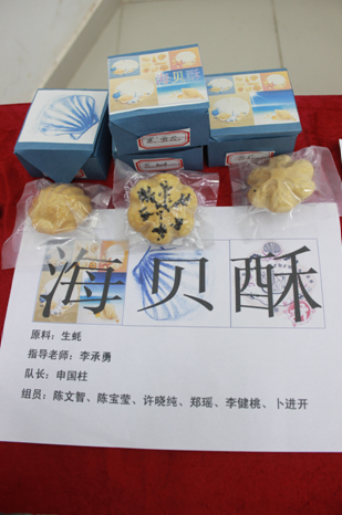活动开始前首先播放一段视频,向观众展示进入决赛的十支参赛团队风采。在半年多的筹备过程中,选手们在实验室大胆创新,坚持不懈,团结协作,制备出样式新颖、包装精巧、加工方法和原辅材料充满新意的产品。在现场答辩环节,各团队分别介绍了产品创意、生产工艺、技术竞争力、市场潜力及营销策划等方面内容,评委根据作品情况进行提问和评审。最终,“鱼骨粉水产风味糕点”作品摘得一等奖,“海贝酥”和“被爱的感觉肉松月饼”获得二等奖,三等奖则被“功能夹心软糖”、“休闲凤尾虾片”和“新型功能型海鲜调味料”获得,“海藻茶”、“海藻贝豆腐”、“葛虾糕”和“藻鳞饼干”获得优秀奖。最后,副经理夏杏洲总结发言,他指出创新和实践是不可分离,要针对实际去创新,不能盲目而行。至此,活动圆满结束。