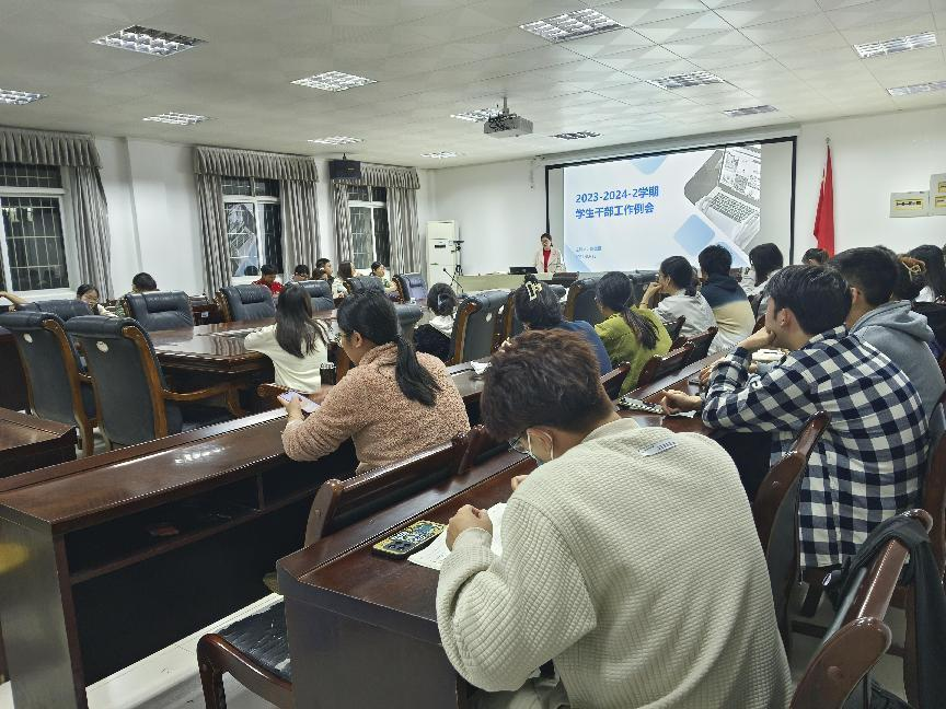 为加强员工干部队伍建设,提升员工干部领导力和团队协作能力,3月12日晚,william威廉中文官网在望海楼A105会议室召开了2024年春季学期研究生干部工作会议,学院全体研究生干部参加会议。会议由研究生辅导员陈傲蕾主持。